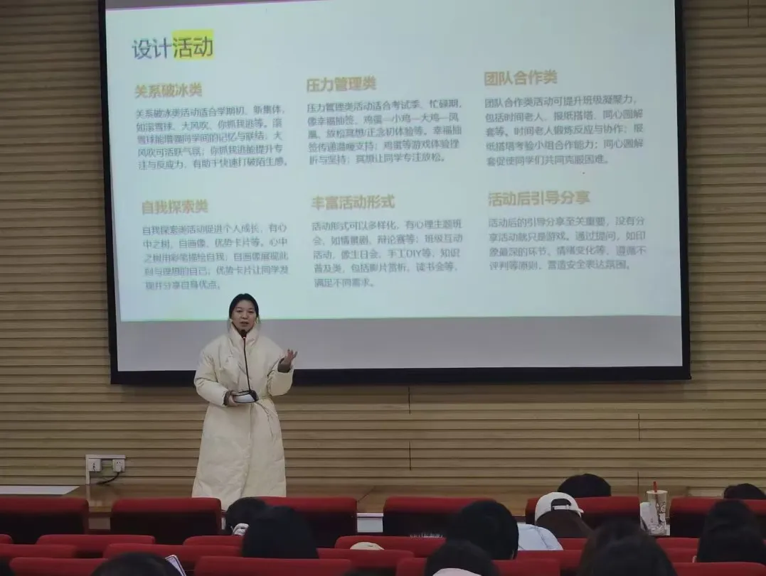 培训通过系统授课、案例分析、实操演练等多元形式,从心理问题识别、危机应对、心理健康活动组织、朋辈辅导到求助渠道等多个维度,为心理委员们打造了系统全面的成长课程。全校9个学院班级心理委员全程参与,累计参与人次达1200人次,实现了2025级心理委员培训全覆盖。
