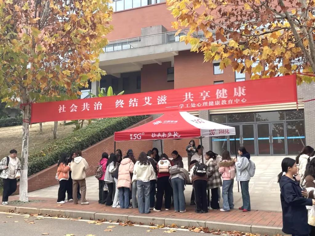 为进一步普及艾滋病防治知识,破除认知误区,倡导平等关爱理念,提升学生自我防护意识与社会责任感,我校学生工作部(处)心理健康教育中心于12月在武汉和咸宁两校区成功举办“指尖暖意,红丝带护‘艾’”——2025年“世界艾滋病日”主题宣传活动。