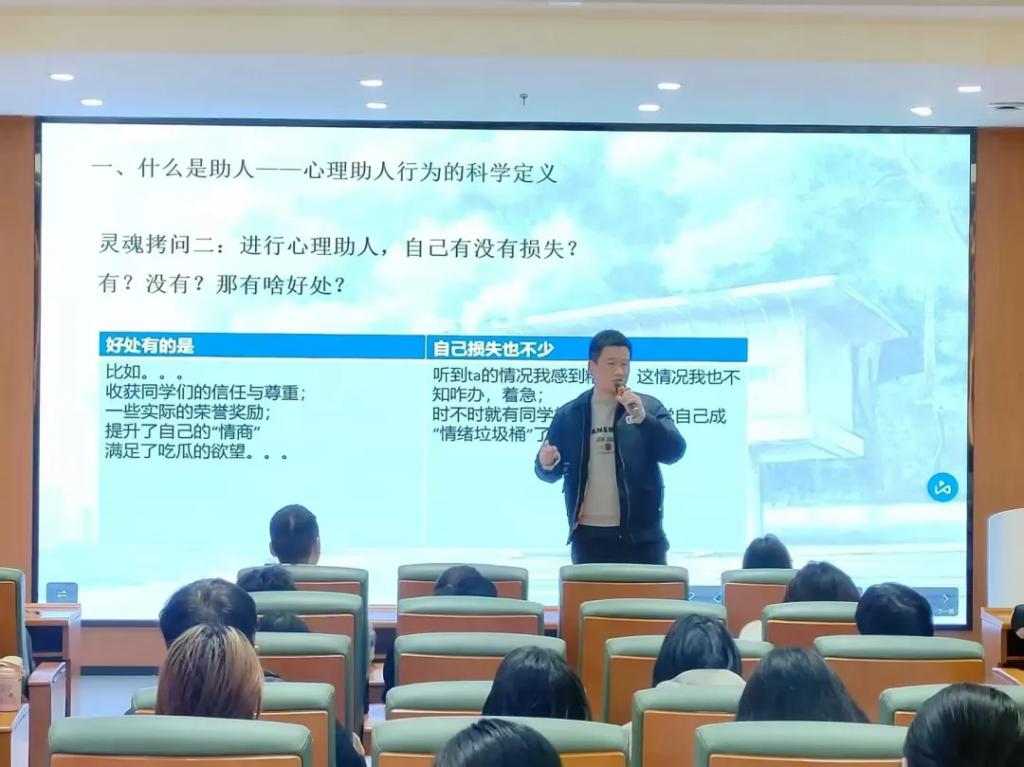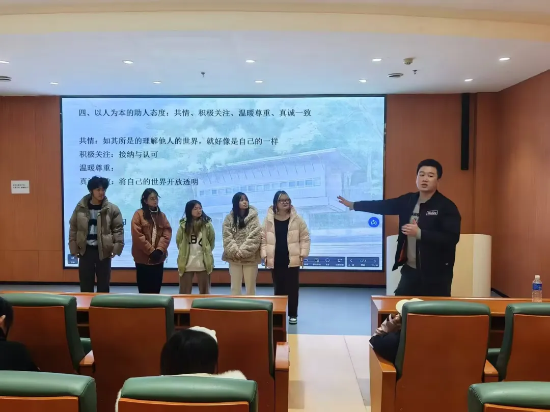为提升心理委员专业素养与实操能力,切实发挥心理委员在校园心理健康工作中的重要作用,筑牢校园心理健康防护网,实现良性校园心理生态,我校心理中心于12月精心策划并开展了6期主题分别为“心理问题的识别与干预”“班级心理健康教育活动的开展”“心理中心的设置与求助渠道”“朋辈心理辅导”“心理委员的助人态度与技术”的心理委员培训,本系列培训由心理中心全体教师主讲。