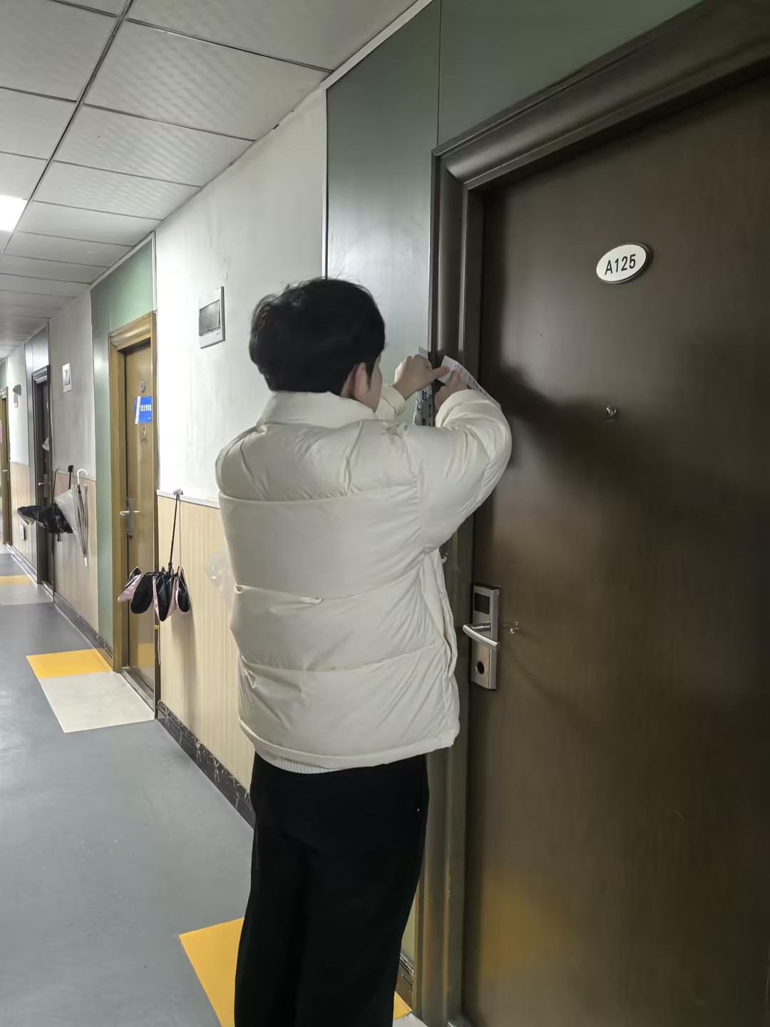 本次走访活动兼具安全管理与人文关怀双重内涵。在王珉的带领下,辅导员们逐一走访各学生寝室,认真核查学生离校情况,进行必要的封寝管理,确保假期宿舍财物与用电安全。王珉细致询问了同学们离校行程安排,反复叮嘱大家务必增强安全意识,锁好门窗、切断电源,平安返家。