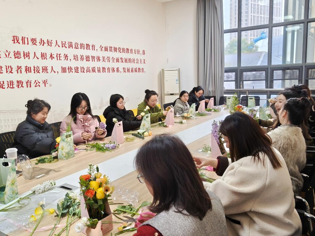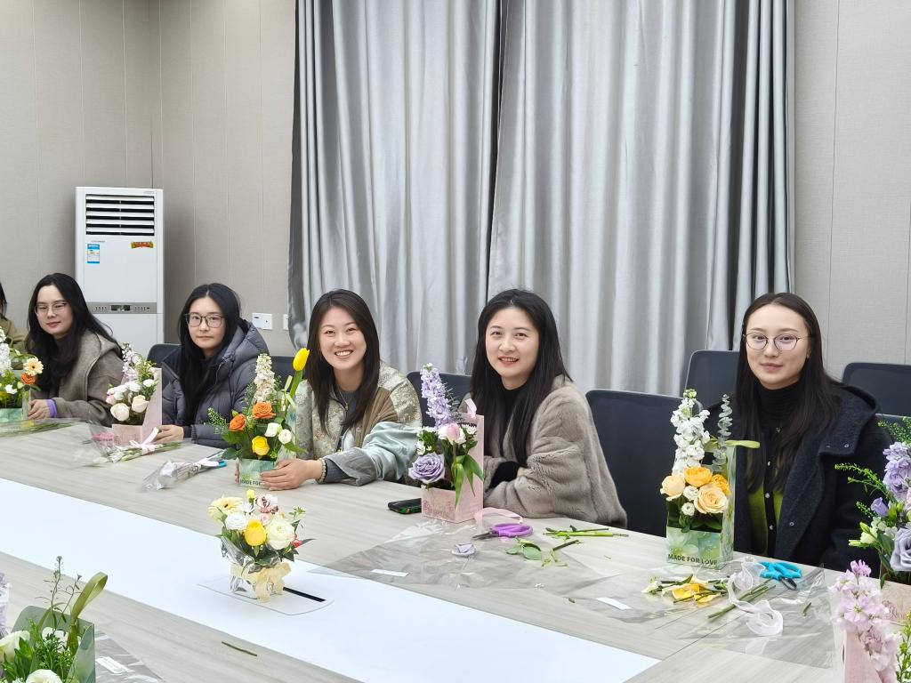 学院还组织了“花香悦生活”主题插花活动,邀请女教师们暂离案头,共赴一场与花的约会。活动现场花香四溢、笑语盈盈,校长助理陈雪芬与大家一同感受花艺魅力。平日里严谨治学的老师们,此刻化身为心灵手巧的“生活美学家”,精心修剪、巧妙构思,将花枝错落有致地插入花篮,创作出一件件清雅别致、富有生机的花艺作品。大家交流心得、分享感悟,在花艺创作中放松身心、感受美好,将春天的气息带回办公室,也将对生活的热爱融入作品之中。