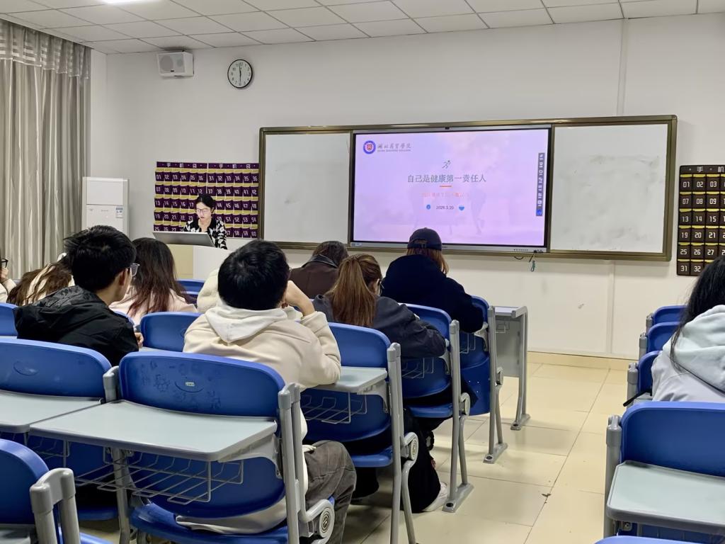 同时,辅导员通过案例分析、互动交流等形式,引导同学们深刻认识“自己是健康第一责任人”的内涵。同学们踊跃发言,分享自身健康感悟,纷纷表示会将健康理念融入日常,以健康的体魄、饱满的精神投入到学习和生活中。此次主题班会的开展,有效强化了学院学生的健康责任意识,下一步,学院将持续开展各类健康教育活动,把健康理念融入学生日常教育管理,助力学生全面健康成长。
