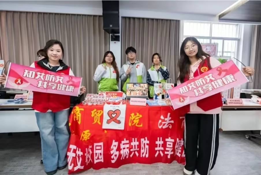 会上,湖商展位以“无艾校园 多病共防 共享健康”为主题,展出了学子自主设计的科普海报、知识折页、普法手册及志愿文创产品,结合专业特色展现了校园健康宣传与志愿服务的实践成果。此外,现场同学还积极向到场嘉宾及各高校代表分享经验、交流互鉴,展位内容与学子风貌获得了现场一致认可与好评。