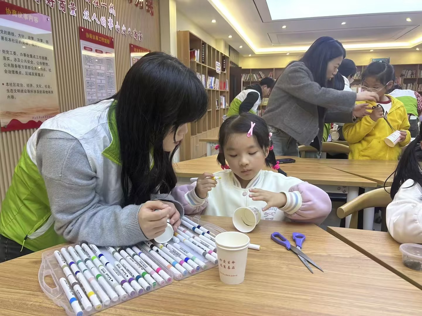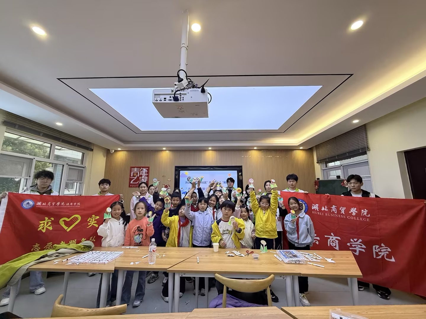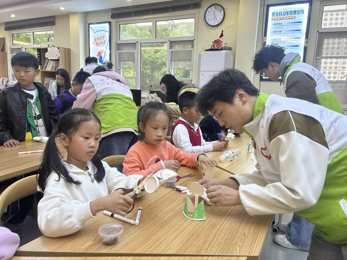 在活动前期,志愿服务队通过线上线下联动进行广泛宣传与筹备。线上,制作精美招募推文与专属海报,利用朋友圈转发、班级群推送等方式招募志愿者;线下,面向全校进行志愿者选拔与培训,准备纸杯、手工刀、手工剪刀、彩笔等手工材料。在多方动员下,多名志愿者迅速集结,活动热度持续攀升,为课堂顺利开展奠定坚实基础。