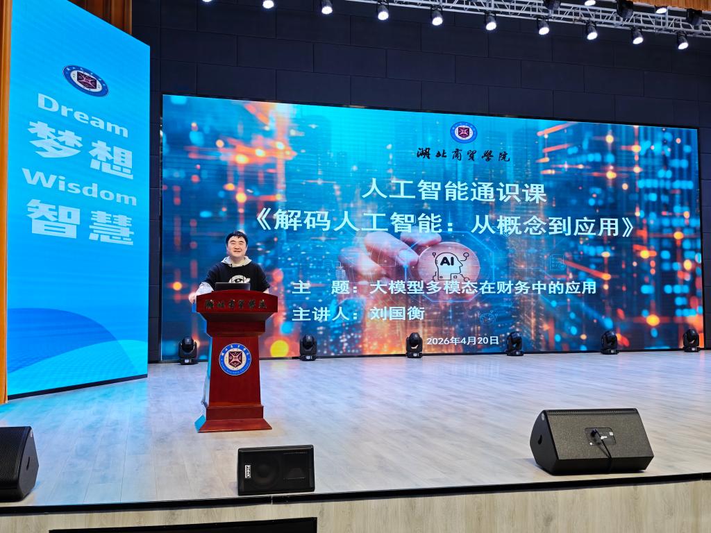 4月20日,人工智能通识课《解码人工智能:从概念到应用》第五讲在咸宁校区文体中心大礼堂顺利举行。教务处副处长谢松主持活动。讲座由会计学院教师刘国衡主讲,咸宁校区2025级各专业学生踊跃参与,共赴一场AI与财务融合的知识盛宴。